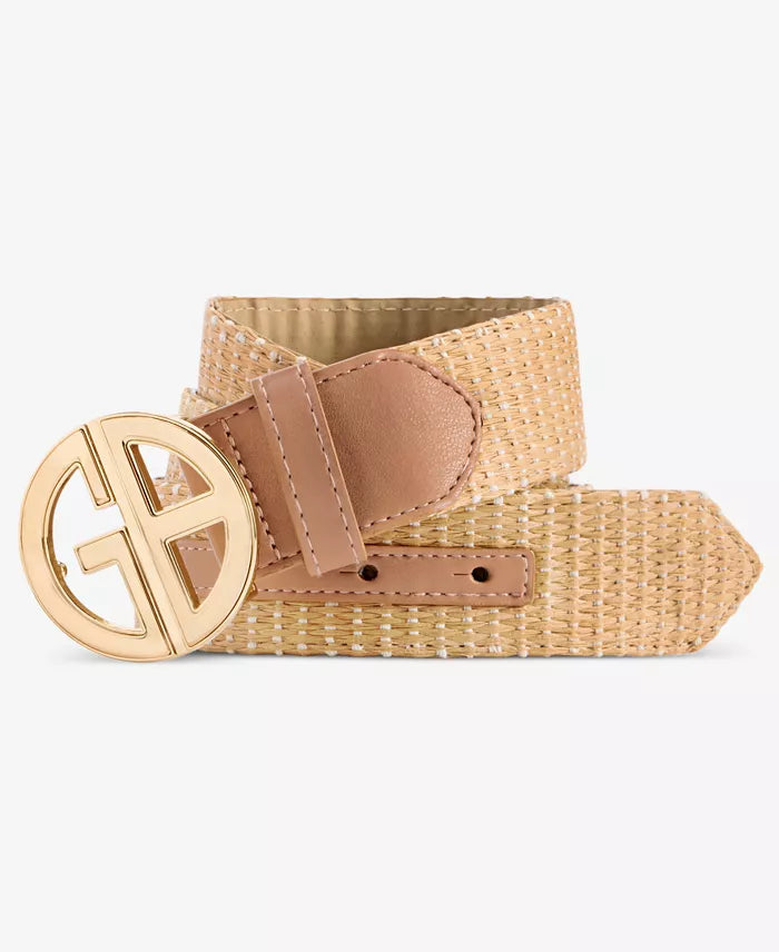 Giani Bernini Logo-Buckle Straw Belt